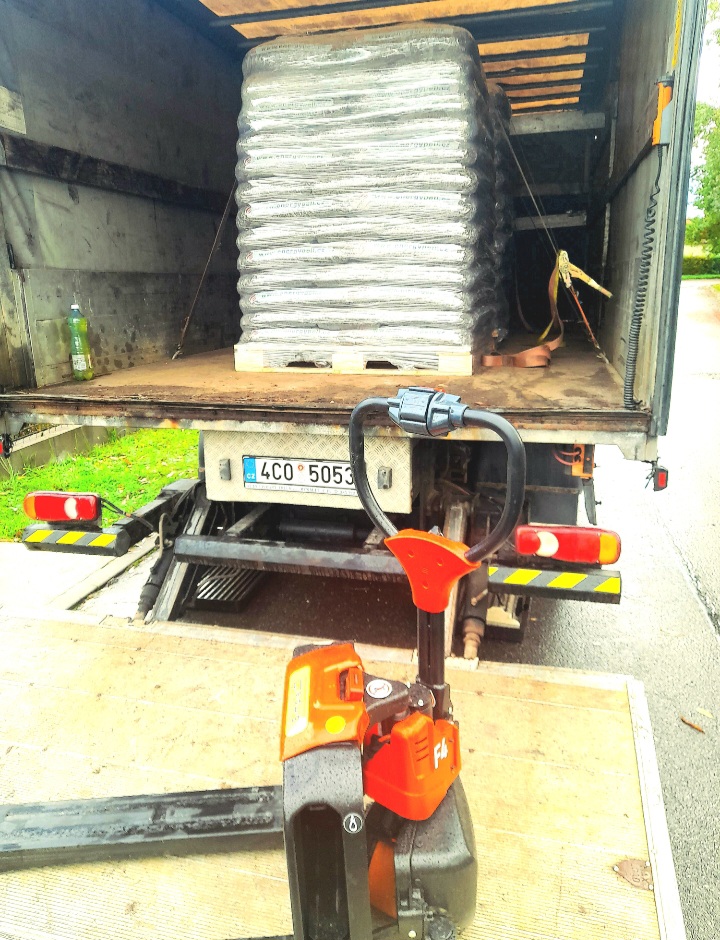 "Doprava pelet je důležitá součást ekologického cyklu využívání biomasy, která přispívá k udržitelnému využívání energie a ochraně životního prostředí. Závozy se provádí nákladním vozem s hydraulickým čelem , s nosností 6 tun = 6 palet pelet."